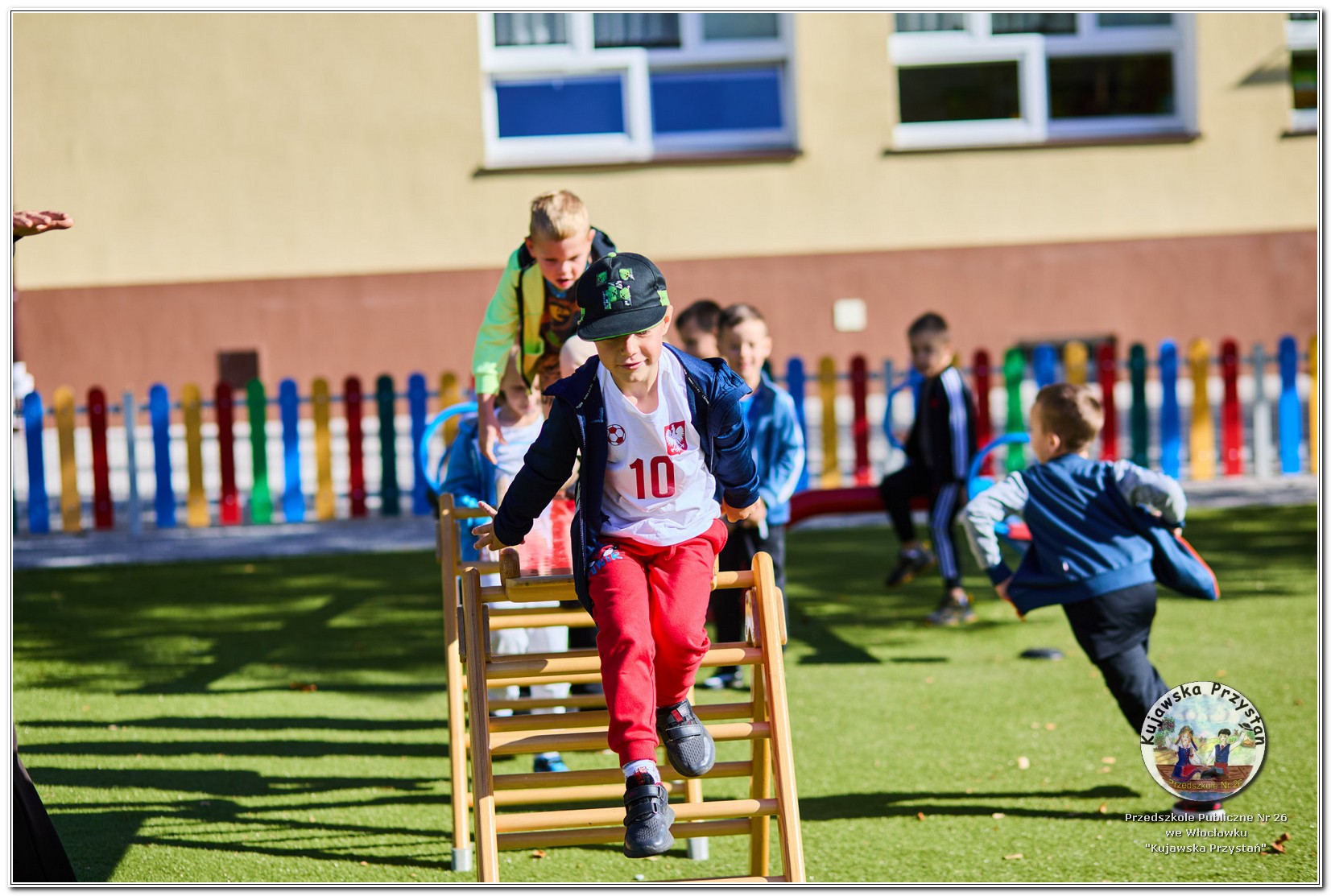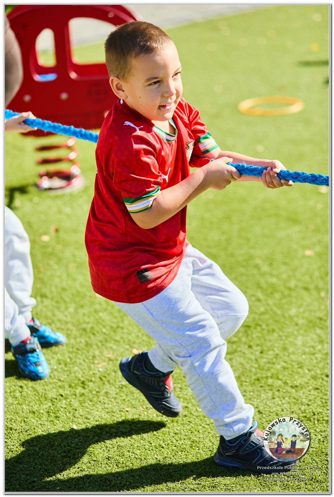 Nasza placówka wzięła dziś udział w projekcie Narodowego Dnia Sportu. Dla przedszkolaków przygotowano wiele różnorodnych konkurencji – biegi, skoki, ćwiczenia zręcznościowe i zabawy ruchowe. Dzieci z ogromnym zaangażowaniem podejmowały sportowe wyzwania, pokazując, że ruch to zdrowie, świetna zabawa i radość wspólnego spędzania czasu.
